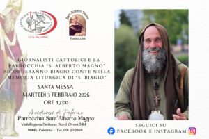 I Giornalisti cattolici e la Parrocchia San Alberto Magno ricorderanno Biagio Conte nella memoria liturgica di San Biagio