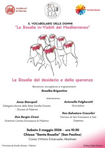 È un percorso comunitario per far emergere le pratiche di bene e di pace che vedono protagoniste “Le Rosalie invisibili del Mediterraneo” in occasione del 400° anniversario del Festino di Santa Rosalia nella città di Palermo; un itinerario territoriale che vede in santa Rosalia una giovane donna alla ricerca del senso profondo della propria vita, simbolo per le nostre… +