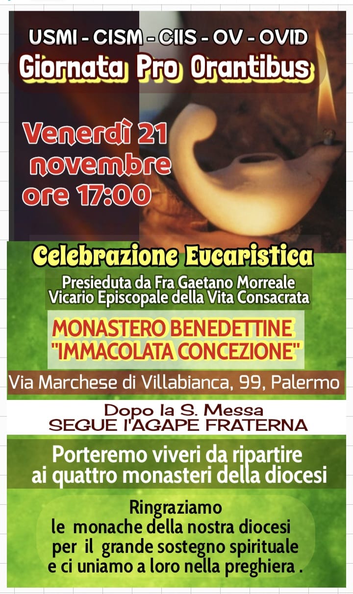 Promossa da USMI, CISM, OVID e CIIS presso il Monastero dell’Immacolata Concezione delle Suore Benedettine (via Marchese di Villabianca 99, Palermo) / MESSAGGIO ARCIVESCOVO