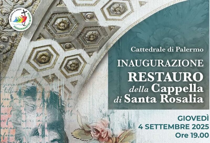 Dopo un attento e meticoloso restauro, nel giorno della memoria liturgica di Santa Rosalia Patrona di Palermo torna a risplendere la Cappella a lei dedicata (contenente l’Urna argentea con le Reliquie) nella Chiesa Cattedrale di Palermo. Giovedì 4 settembre 2025 alle ore 19.00: Saluto introduttivo: Mons. Filippo Sarullo, Parroco della Chiesa Cattedrale Presentazione dei lavori effettuati: Dott. Alberto Trapani, Restauratore Cenni storici sulla Cappella e … Continua a leggere Inaugurazione del restauro della Cappella di Santa Rosalia »