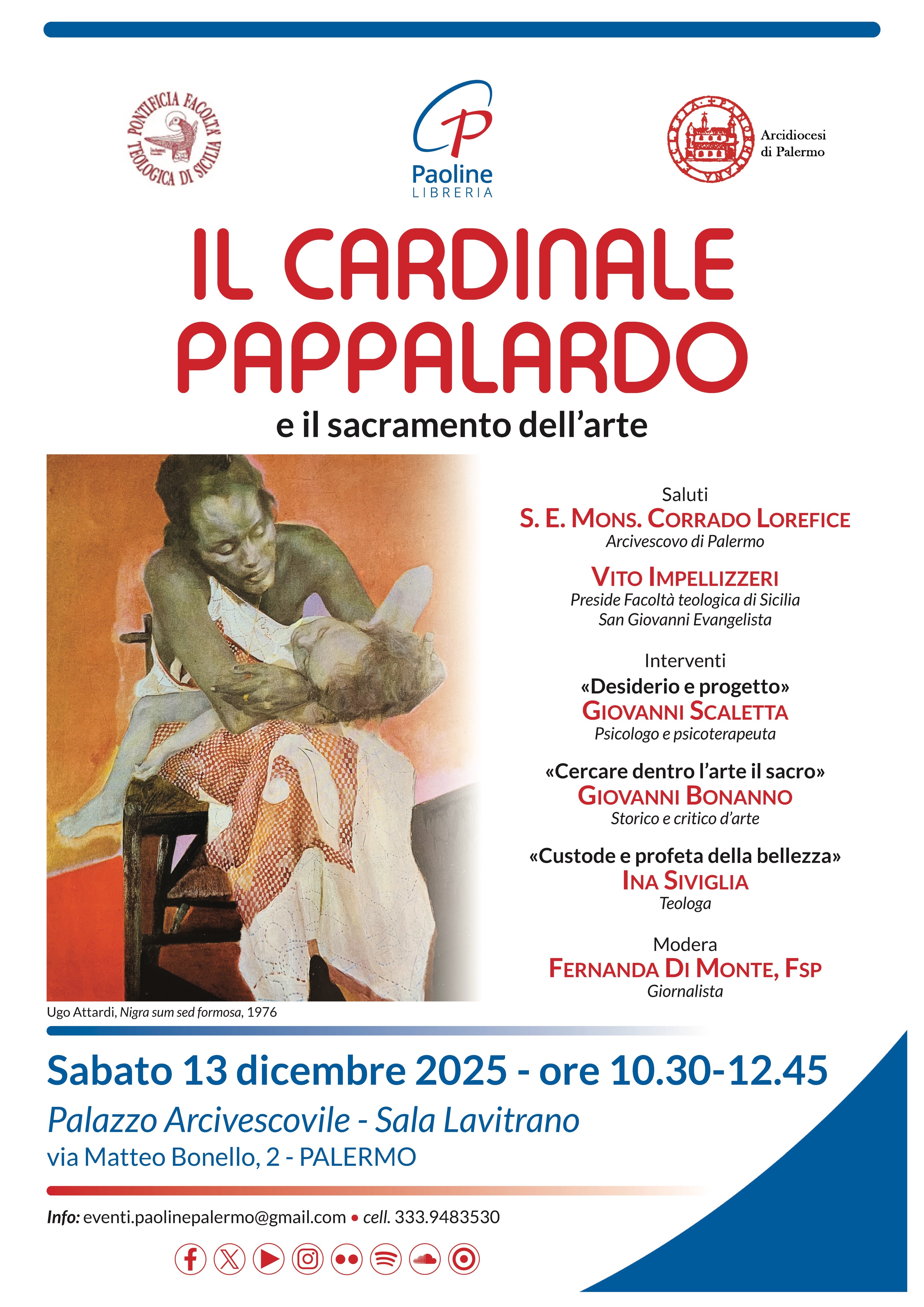 calendario diocesano 18 Novembre 2025 Eventi Diocesani sabato 13 Dicembre Descrizione: Convegno: “Il Cardinale Pappalardo e il sacramento dell’arte” Palazzo Arcivescovile, Palermo Inizio: 13/12/2025 10:30 Fine: 13/12/2025 12:45 Categorie: calendario diocesano Allegati: Locandina.jpeg Città: Palermo Regione: Sicilia Paese: Italia